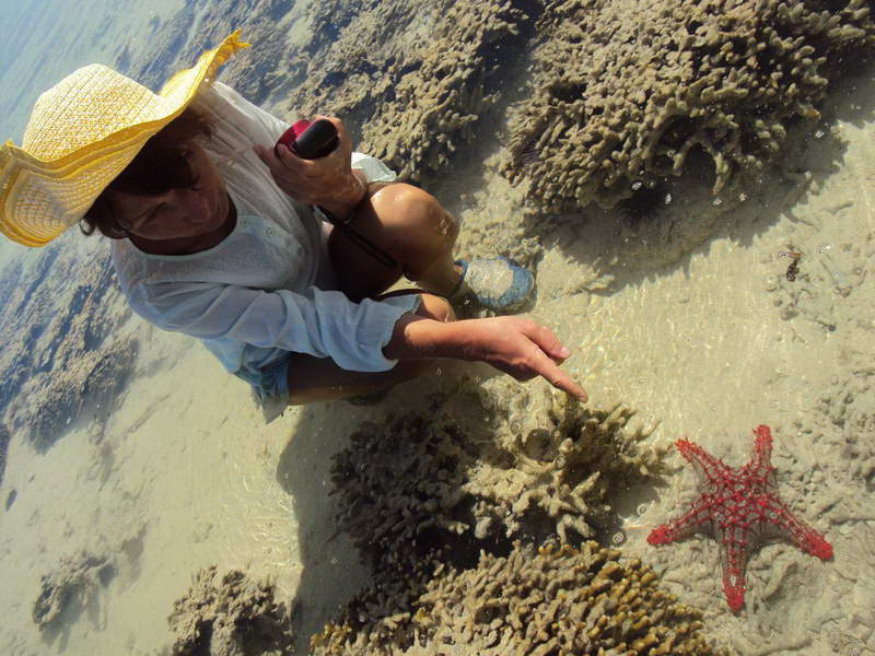 Но супер открытием для нас на Занзибаре стали прогулки по коралловому рифу во время отлива. Ни в одном путеводителе нет такого предложения. Не нужно специального костюма для погружения, определенных навыков и умений. Только представьте себе, вода уходит на сотни метров от берега, и все дно как на ладони.