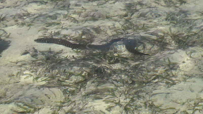 Вероятно это мурена. Она быстро уползала под ближайший коралл.
